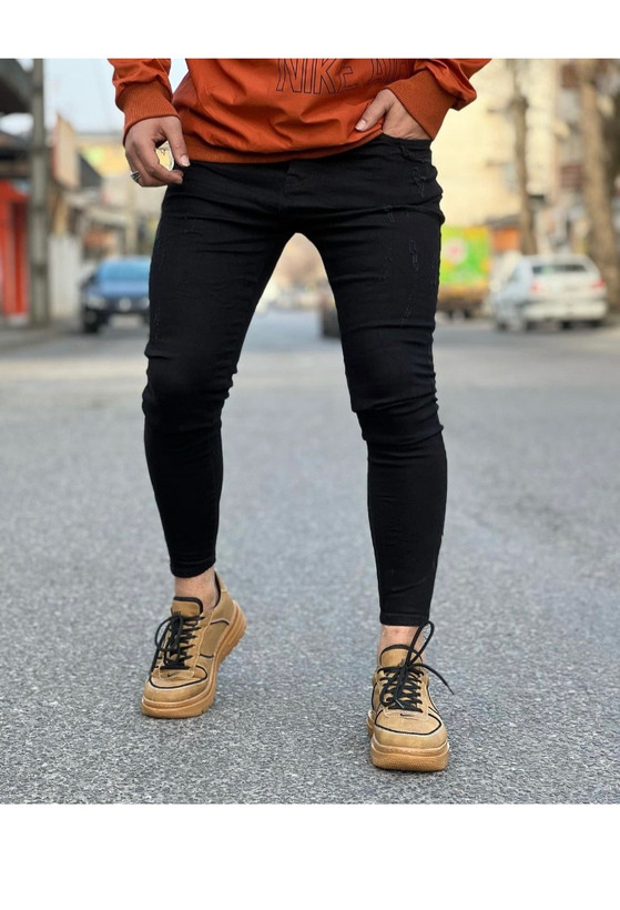 شلوار جین مردانه رنگ مشکی پرکلاغی دمپا جذب فول کش