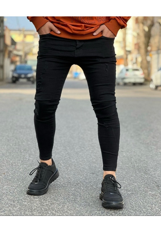 شلوار جین مردانه رنگ مشکی پرکلاغی دمپا جذب فول کش وارداتی اورجینال
