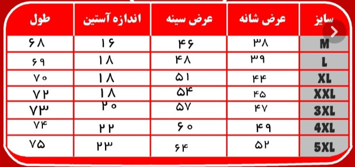 اندازه سایز ها بر اساس عرض سینه : M=46 - L=49 -XL=52 - 2XL=55 - 3XL=59 جنس : دوشین هندی کشور مبدا : ترکیه-تولید مجموعه بهبودی وی ای پی کیفیت و ماندگاری : بسیار خوب