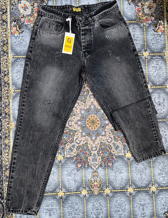 شلوار مام فیت مردانه پارچه پر سنگ شور شده شلوار جین مام فیت ذغالی اورجینال