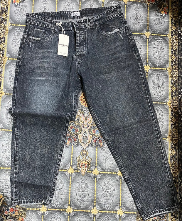 شلوار مام فیت مردانه پارچه پر سنگ شور شده شلوار جین مام فیت آبی تیره اورجینال