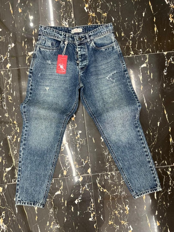 شلوار مام فیت مردانه پارچه پر سنگ شور شده شلوار جین مام فیت آبی اورجینال