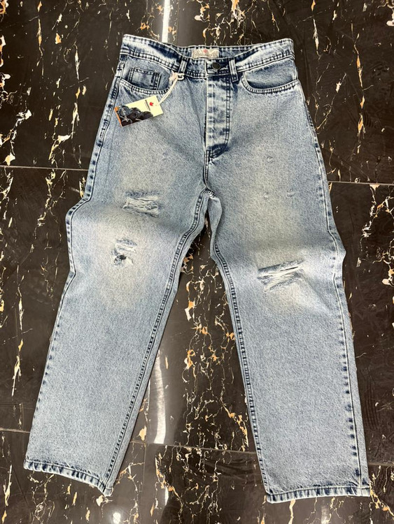 شلوار بگ مردانه پارچه پر سنگ شور شده شلوار جین بگ یخی زاپدار زانفیکس اورجینال