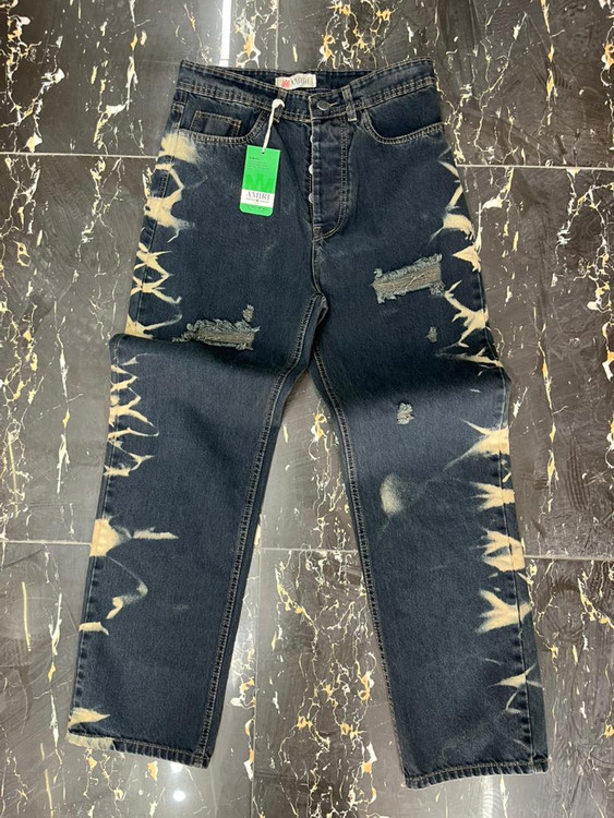 شلوار بگ مردانه پارچه پر سنگ شور شده شلوار جین بگ آبی تیره اورجینال